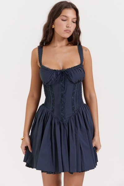 If there was a more perfect soft girl mini dress, we don't know of it. 'Pietra' is all you need to live out your feminine farm girl fantasies. The romantic sweetheart neckline has gathered underwired cups and the pin tuck bodice features internal boning that cinches the waist. We love the pretty lace up back and the feminine vibe is finished with the lace edged lining.